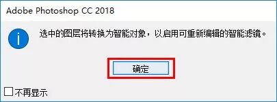 此时会弹出提醒框,直接单击确定启用智能滤镜就可以了。如果勾选左下角的不再显示复选项,则以后使用该功能时不再出现提示框。