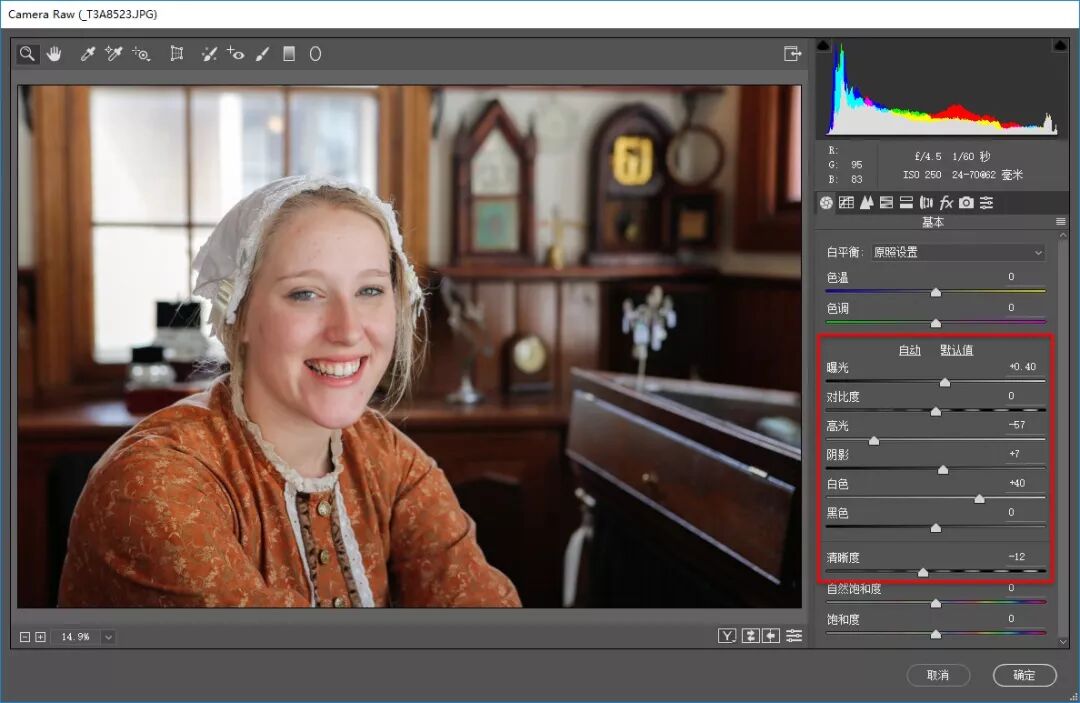 步骤2:在“基本”面板中,对照片的影调及色彩等进行整体的处理。可以看到,此时的照片无论色彩、影调都变得比较理想,也变得比较漂亮。
