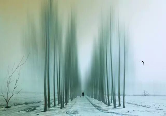 如果你还会用后期软件,在拍好的抽象照片中加入一些起衬托作用的静止景物,看着会更有超现实的魔幻感:
