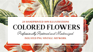 【PNG素材】24副精美植物花卉高分辨率扫描古文献插图PNG图片素材 24 Colored Flower Illustrations
